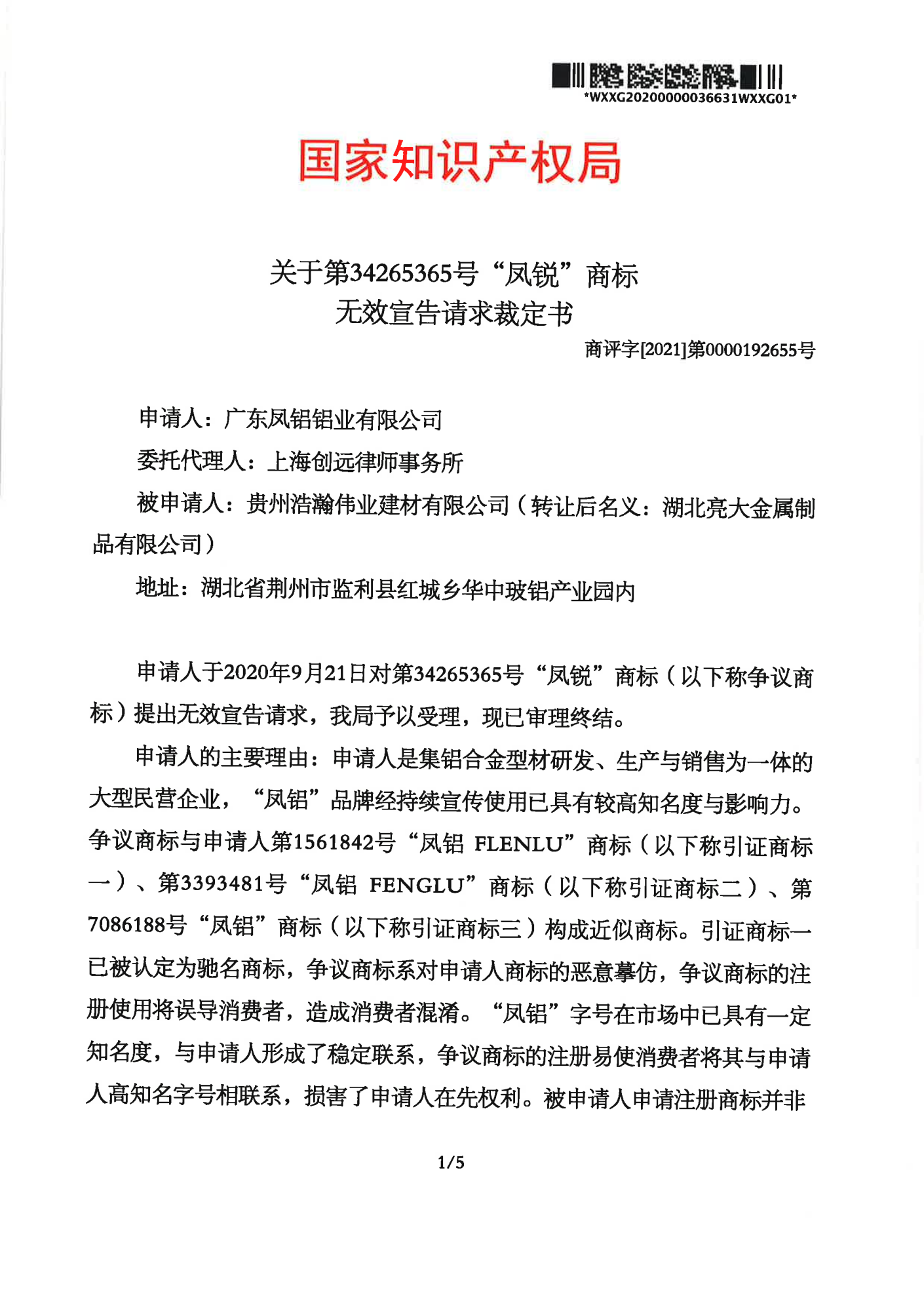宜春辉知队 | 国家知识产权局:“凤锐”商标无效