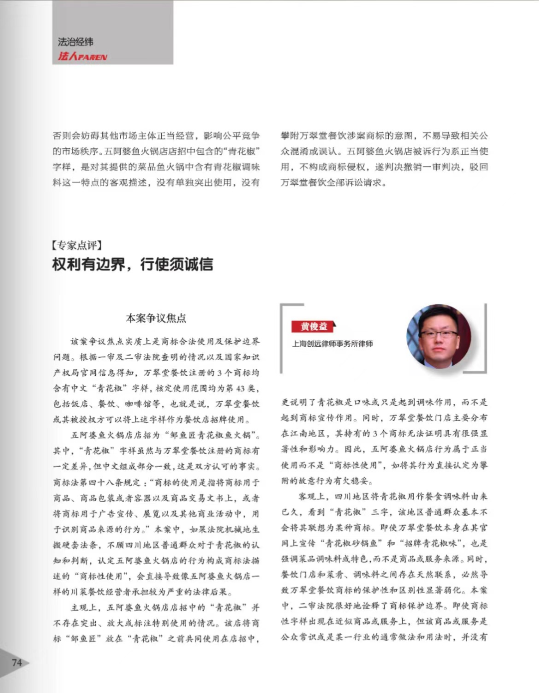 宜春辉知简讯 | 辉知队黄俊益律师应“法治日报”旗下杂志邀请,就“青花椒”案发表专家点评